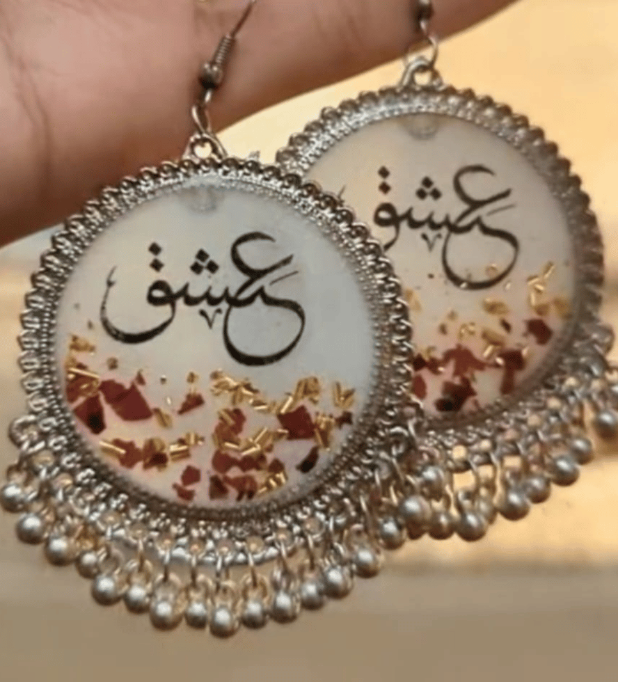 Artistic Calligraphy: The center of each earring features the word “Ishq” (Love) in graceful black script.