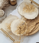 Embellishments: Accented with shimmering gold leaf flakes and gold-painted scalloped edges to create a luxurious “geode” aesthetic.
