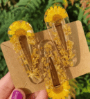 Design: Real (or high-quality silk) yellow sunflowers preserved in durable resin.